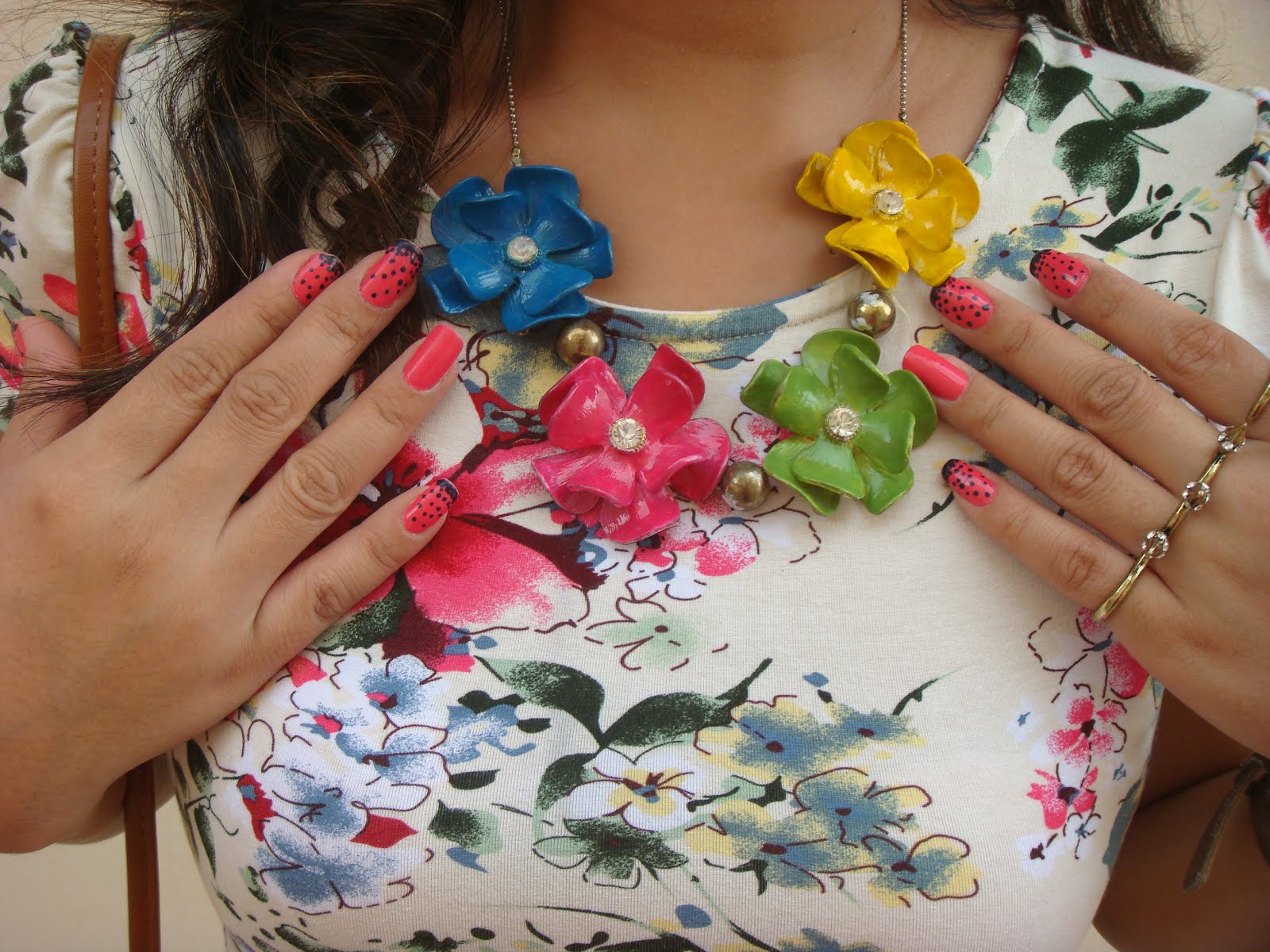 I opted for the neutral accessories from bag,shoes,watch and belt. And for the necklace, that really suits to my Flowery dress. Actually this is a bracelet before but because my wrist is so thin, I ended up doing some DIY's on it and make them a necklace and painted them with some of my Nail polishes. Now I regret why I did'nt even take some pics to show you the before and after. By the way hope you guys like my Outfit of the day.